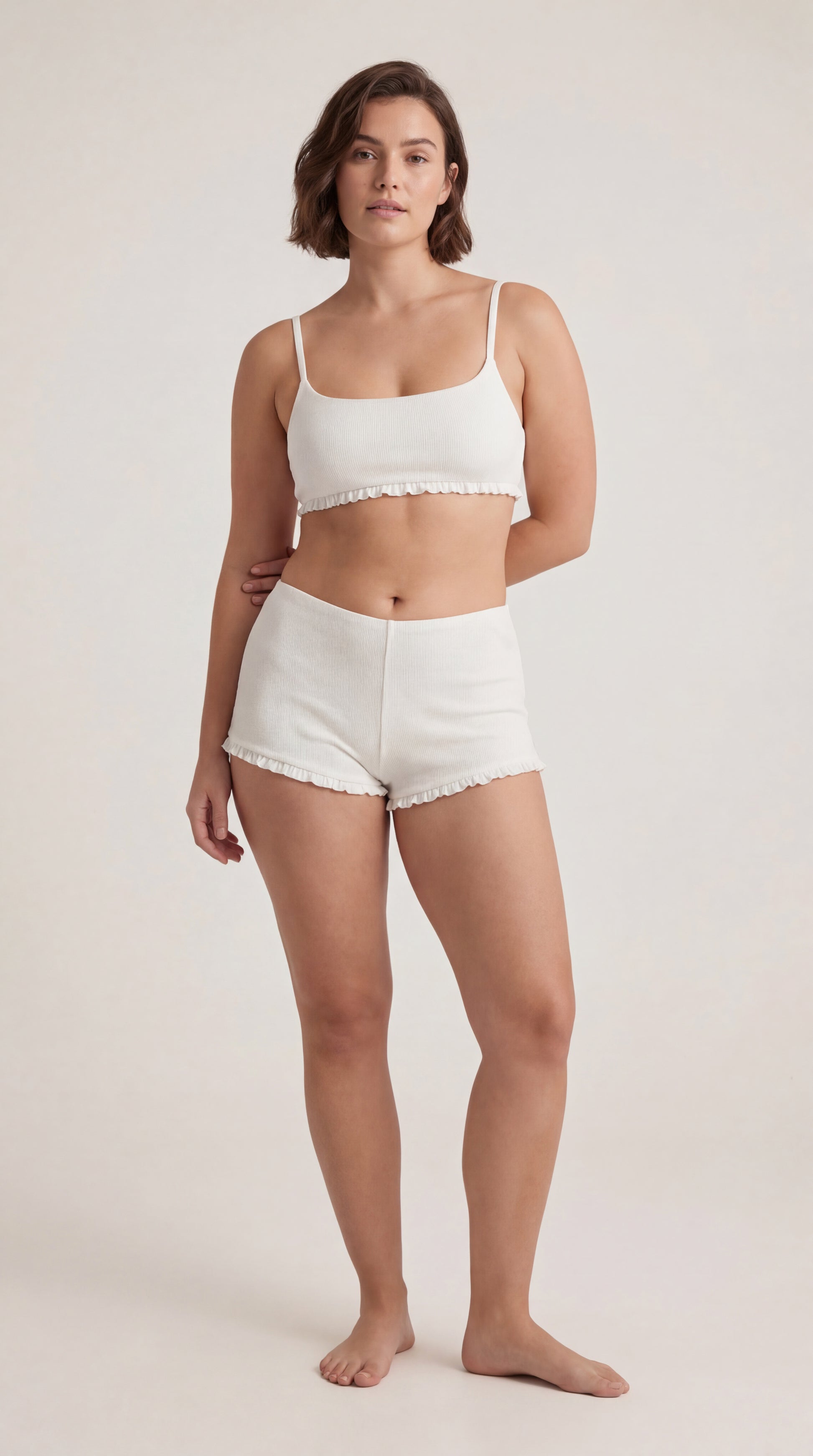 Polyalgodon textura rib con canaletas delicadas suaves ligeras y delicadas, lo que la hace una pijama fresca, suave, perfecta amoldada al cuerpo para darte comfort toda la noche, el top tiene tensores para ajustarlo con mayor comodidad.